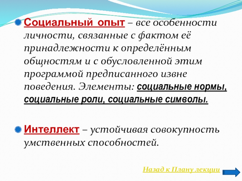 Слайд 16Социальный опыт – все особенности личности, связанные с фактом её