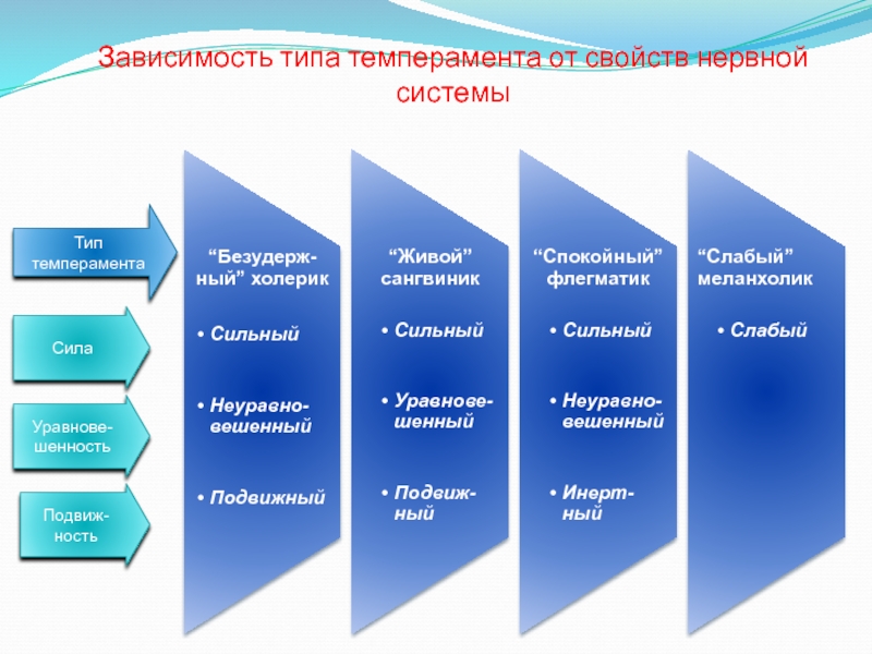 Слайд 83Зависимость типа темперамента от свойств нервной системы
