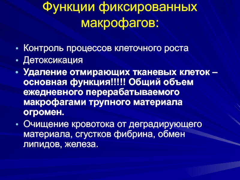 - секреторно-сигнальная: оповещает о нарушении метаболизма (DAMPs), привлекает, через синтез хемокинов клетки врожденного иммунитета (нейтрофилы, моноциты/макрофаги и др.).