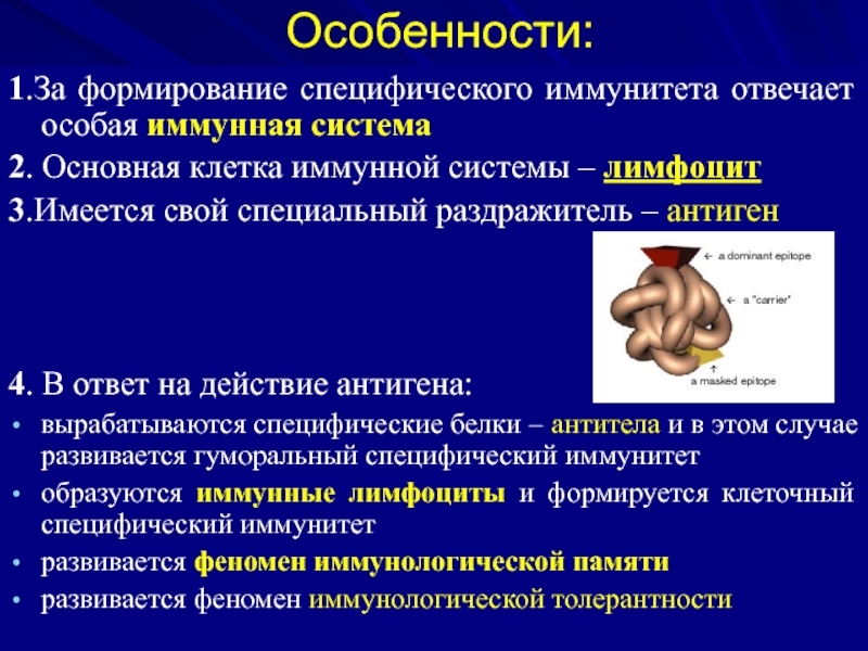 1.За формирование специфического иммунитета отвечает особая иммунная система