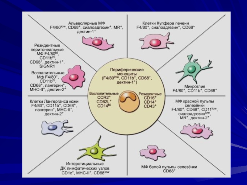 5 – клетки-предшественники В1-лимфоцитов: в период эмбриогенеза отселяются из костного мозга в брюшную и плевральную полости и там они становятся зрелыми и вступают в иммуногенез, поддерживают дифферен-цировку В1-лимфоцитов в течении всей жизни
