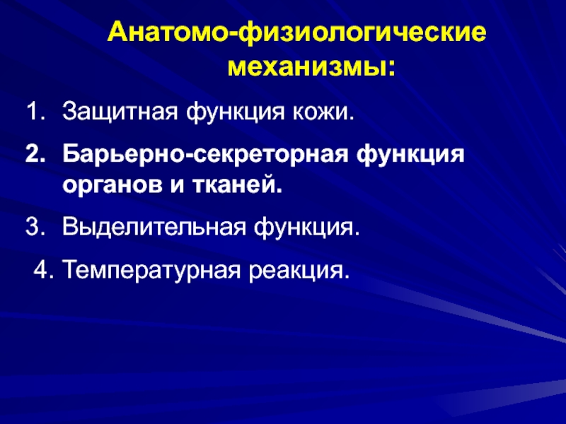1. Анатомо-физиологические механизмы (барьерная и выделительная функции, воспаление