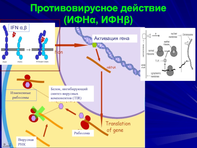 Слайд 63Противовирусное действие (ИФНα, ИФНβ)