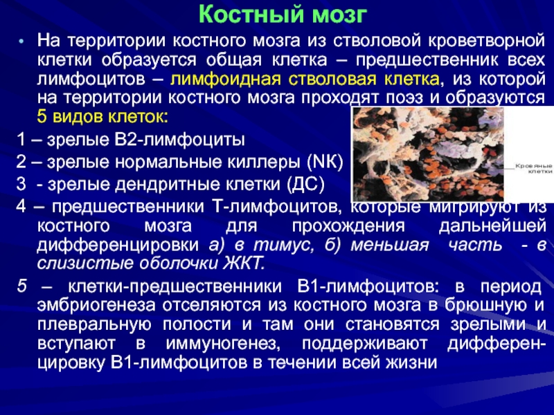из которой на территории костного мозга проходят поэз и образуются 5 видов клеток: