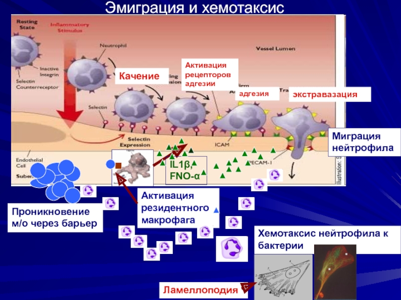 адгезия (прикрепление с остановкой на фоне повышения в тканях IL-8,