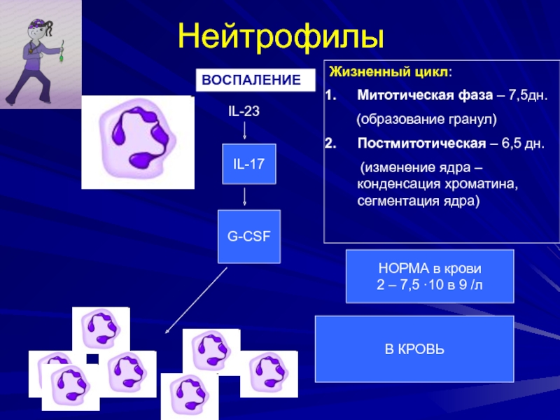 (изменение ядра – конденсация хроматина, сегментация ядра)