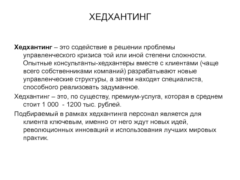 Хедхантинг – это содействие в решении проблемы управленческого кризиса той