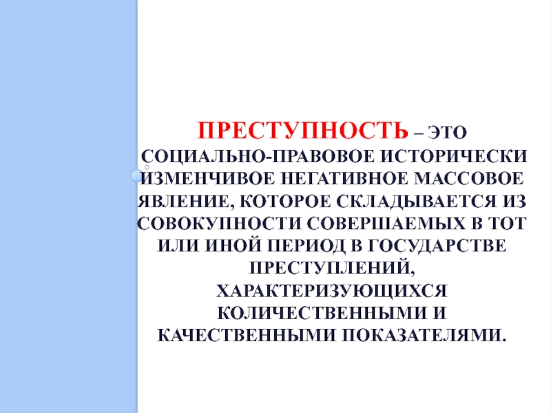 в определённый период времени в данном обществе, но не является простой суммой этих преступлений.Имеет свои границы, поскольку понятие преступления и конкретные виды преступлений закреплены в их составах и описаны в уголовном законе.