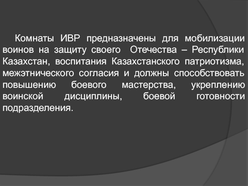 Слайд 4 Комнаты ИВР предназначены для мобилизации воинов на защиту своего Отечества