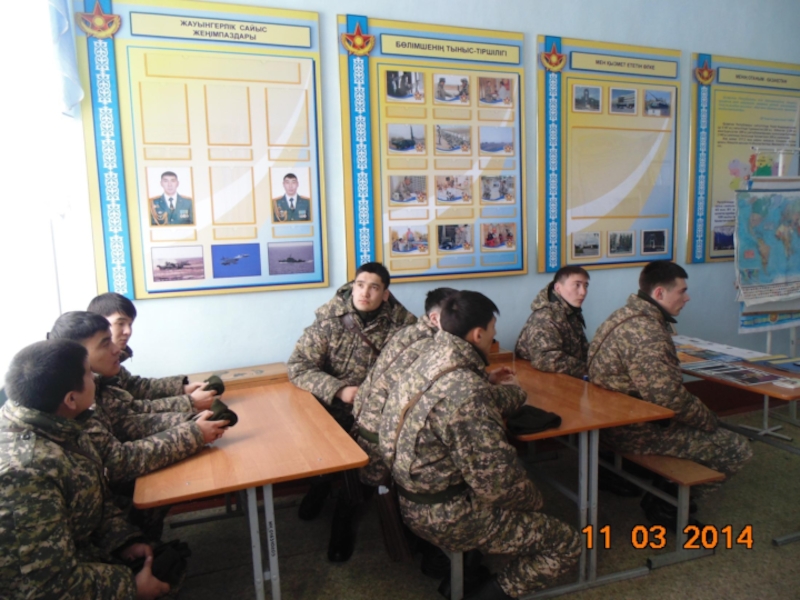 просмотр важных телевизионных передач, занятия коллективов художественной самодеятельности, экскурсии, спортивно-массовые мероприятия, мероприятия посвященные государственным праздникам, юбилейным датам ВС РК, части, подразделения, встречи с ветеранами воины и труда, отличниками учебы, передовиками боевого состязания.