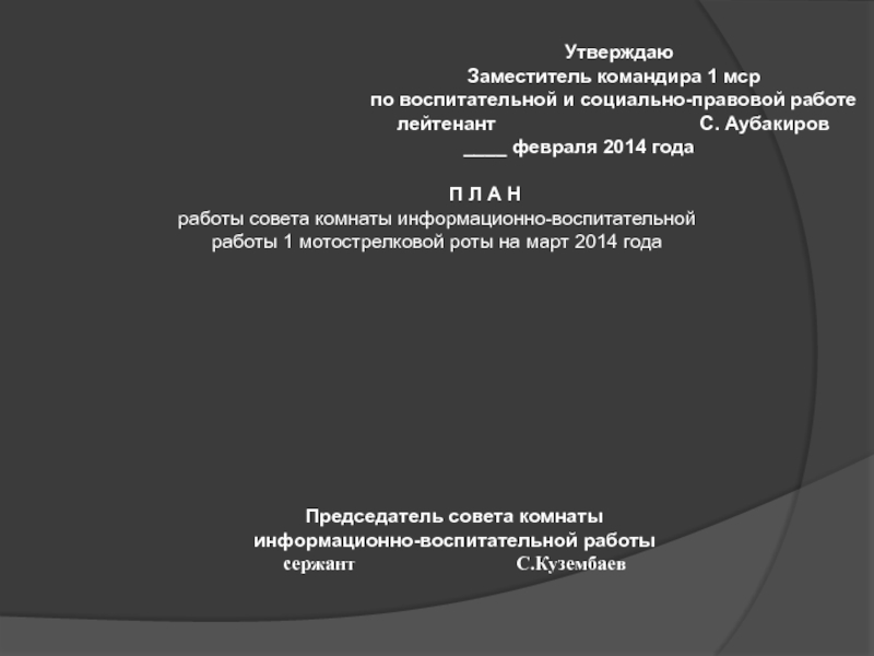 План утверждается командиром подраз-деления или его заместителем по воспитательной и социально-правовой работе.