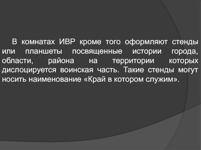 Слайд 21 В комнатах ИВР кроме того оформляют стенды или планшеты посвященные