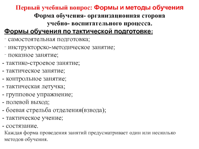 Слайд 4Первый учебный вопрос: Формы и методы обучения