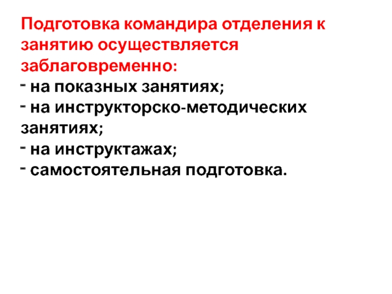 Слайд 7Подготовка командира отделения к занятию осуществляется заблаговременно: