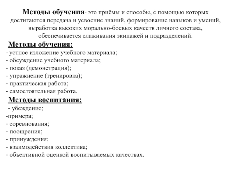 1. Изучить методы и формы обучения по тактической