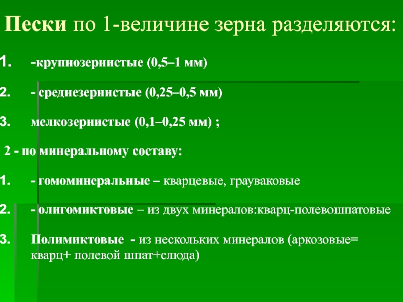- крупнообломочные (псефиты), средне- (псаммиты)