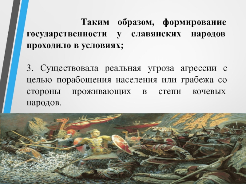 3. Существовала реальная угроза агрессии с целью порабощения населения или грабежа со стороны проживающих в степи кочевых народов.