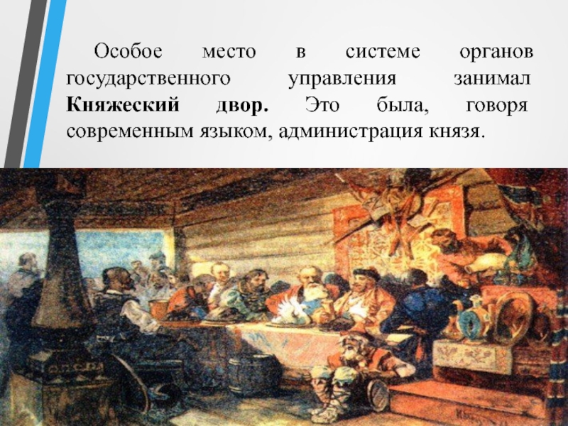 Слайд 59Особое место в системе органов государственного управления занимал Княжеский двор.