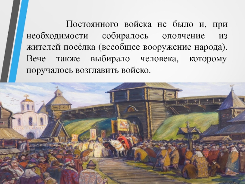 необходимости собиралось ополчение из жителей посёлка (всеобщее вооружение народа). Вече