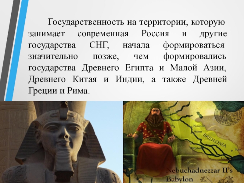 формировались государства Древнего Египта и Малой Азии, Древнего Китая и Индии, а также Древней Греции и Рима.