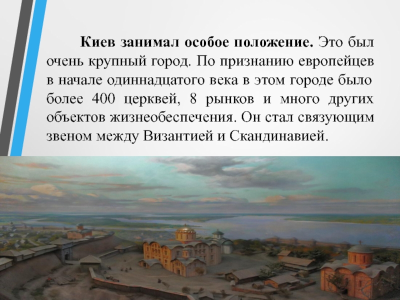 в этом городе было более 400 церквей, 8 рынков и много других объектов жизнеобеспечения. Он стал связующим звеном между Византией и Скандинавией.