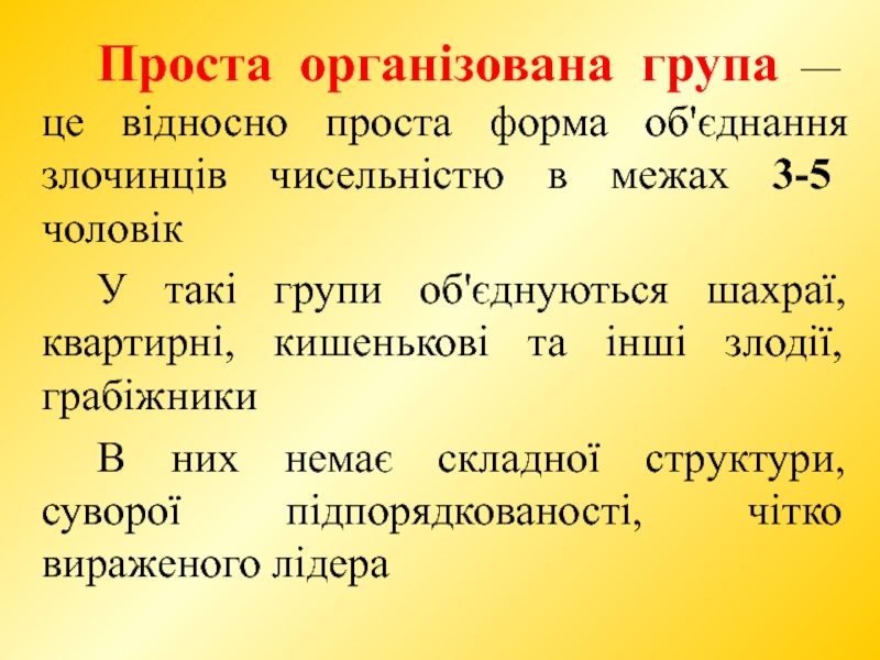 Слайд 26 Проста організована група — це відносно проста форма об'єднання злочинців