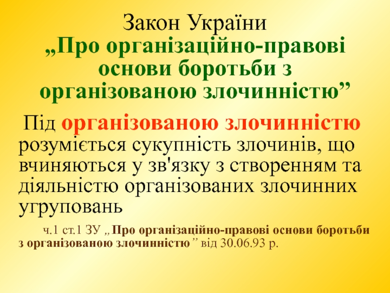 ч.1 ст.1 ЗУ „Про організаційно-правові основи боротьби з організованою злочинністю” від 30.06.93 р.