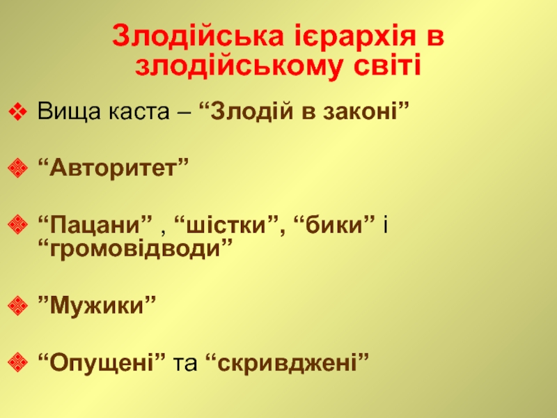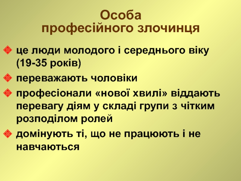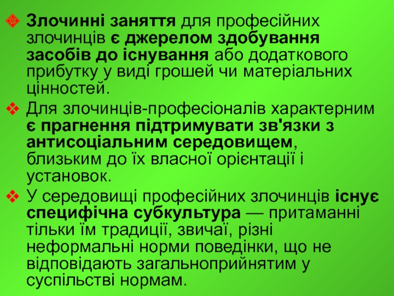 Слайд 7Злочинні заняття для професійних злочинців є джерелом здобування засобів до