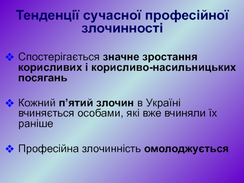 Слайд 2Кримінологічна характеристика та попередження професійної злочинності