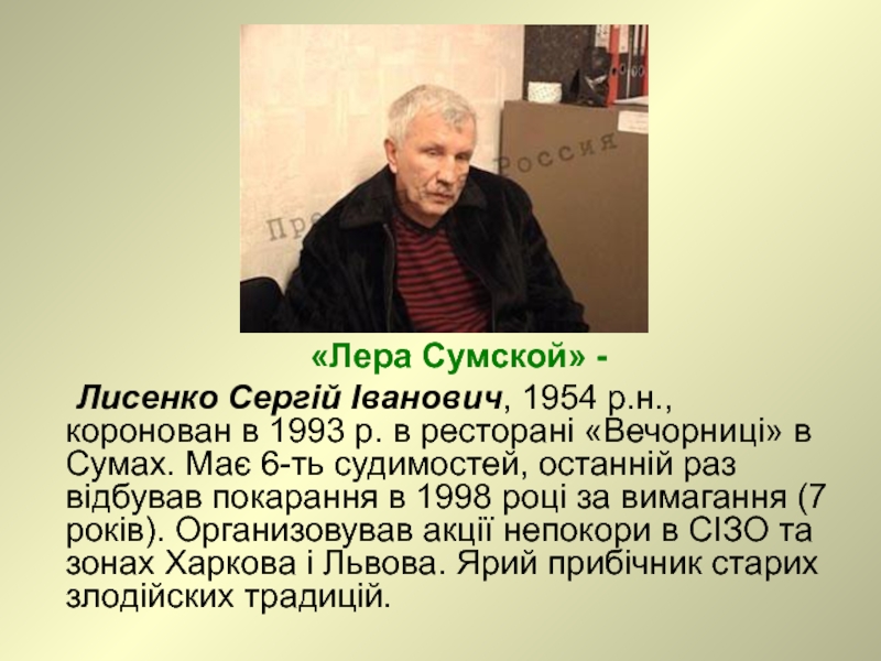 1993 р. в ресторані «Вечорниці» в Сумах. Має 6-ть судимостей,