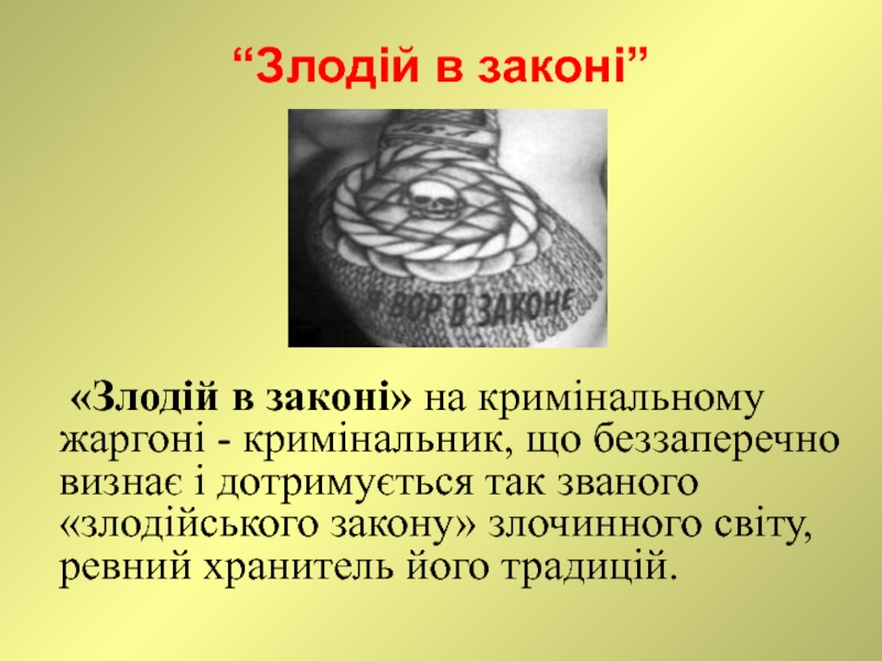 що беззаперечно визнає і дотримується так званого «злодійського закону» злочинного