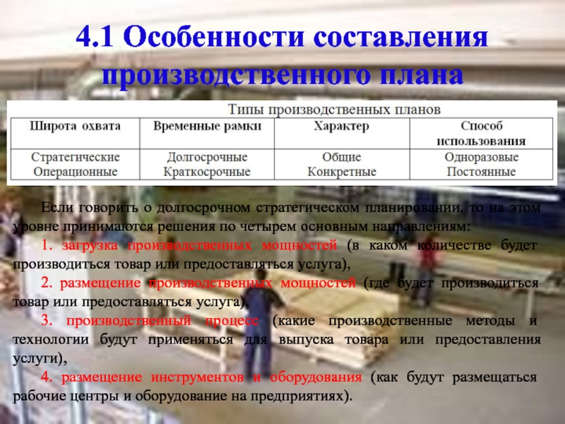производственный план по всем видам товаров и услуг, предлагаемых фирмой), который составляется на определенный период времени – как правило, на один год.