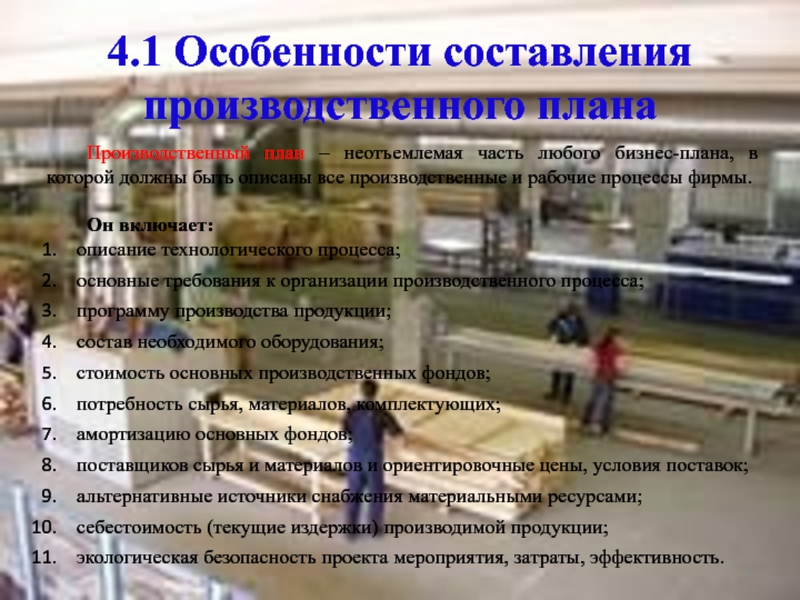 бизнес-плана, в которой должны быть описаны все производственные и рабочие