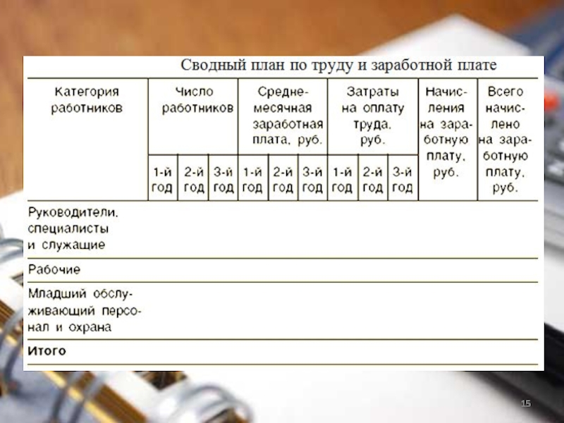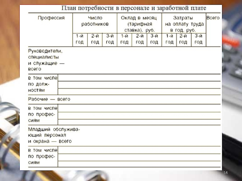 расчет потребности в специалистах различных категорий и обоснование уровня квалификации и оплаты труда;