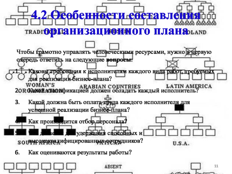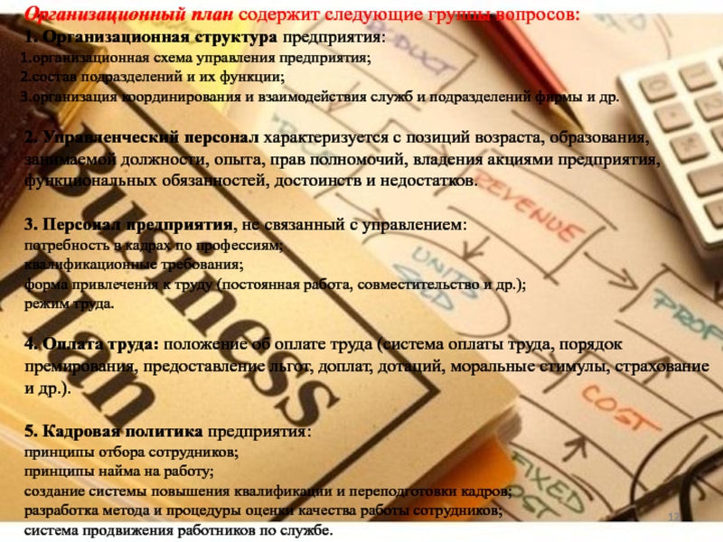 Слайд 12Организационный план содержит следующие группы вопросов: