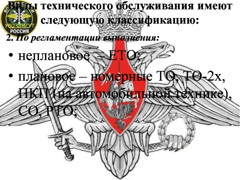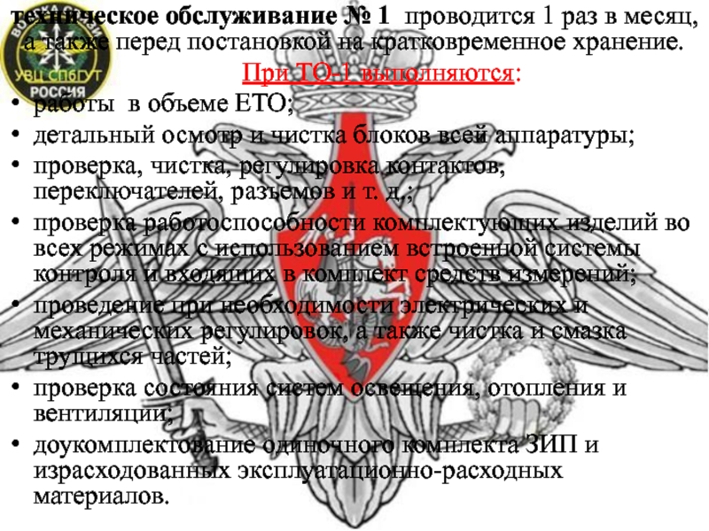 Слайд 8При ТОН перечень и периодичность выполнения операций ТО определяются значением