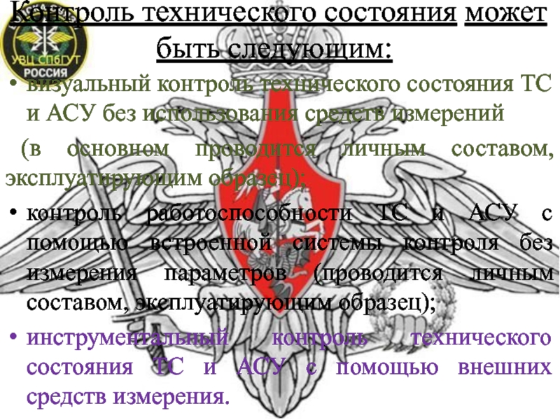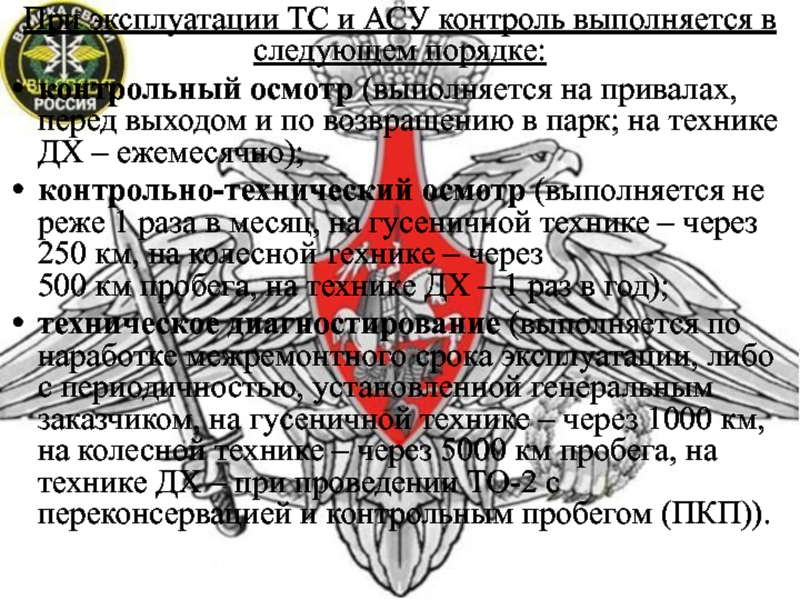 Слайд 16При эксплуатации ТС и АСУ контроль выполняется в следующем порядке: