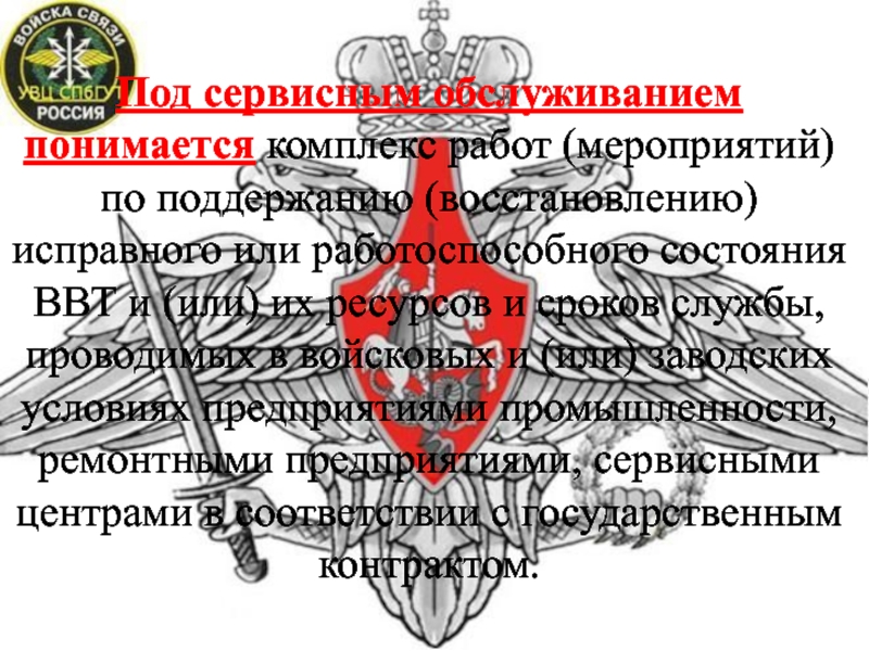 сроков службы, проводимых в войсковых и (или) заводских условиях предприятиями промышленности, ремонтными предприятиями, сервисными центрами в соответствии с государственным контрактом.