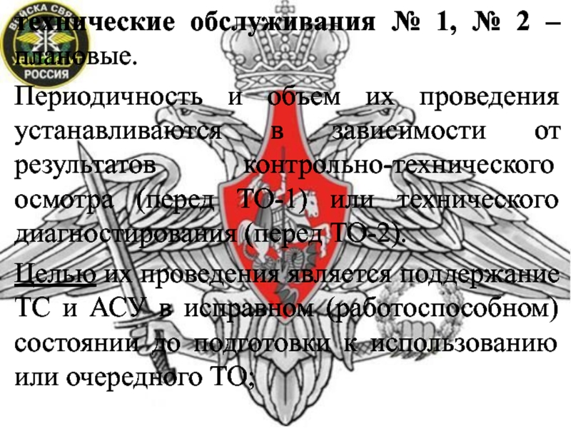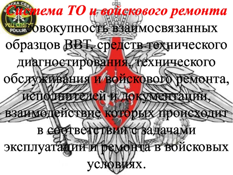Слайд 7Система ТО и войскового ремонта – совокупность взаимосвязанных образцов ВВТ,