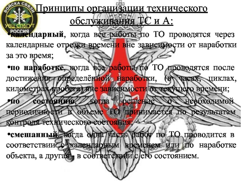 Слайд 9Принципы организации технического обслуживания ТС и А: