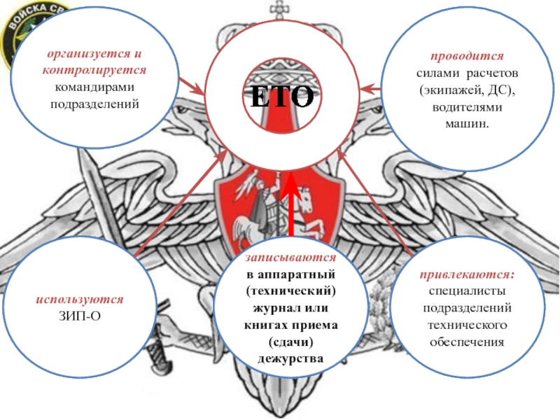 Оценка работоспособности техники связи и АСУ по встроенным приборам в рамках ЕТО, как правило, проводится при приеме-сдаче дежурства. Время выполнения ЕТО на каждом конкретном образце техники определяется начальником подразделения. Результаты выполнения ЕТО оформляются в аппаратном (техническом) журнале по окончании работ.