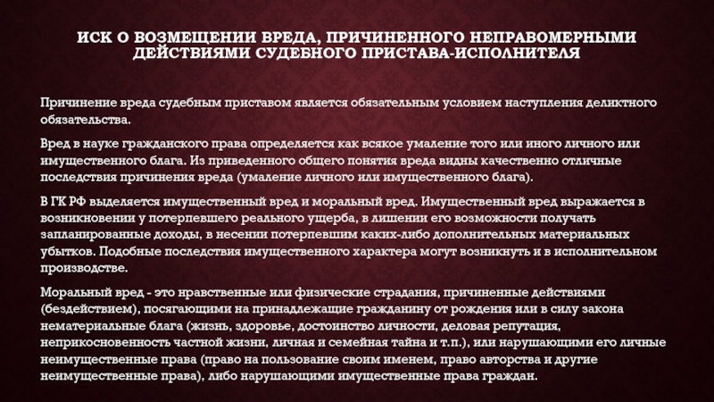 Слайд 29Иск о возмещении вреда, причиненного неправомерными действиями судебного пристава-исполнителя