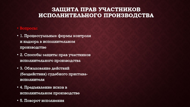 Слайд 1Тема №9: «Защита прав участников исполнительного производства»