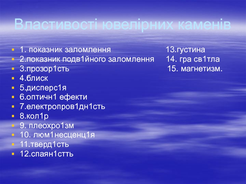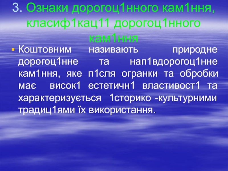 Слайд 603. Ознаки дорогоц1нного кам1ння, класиф1кац11 дорогоц1нного кам1ння