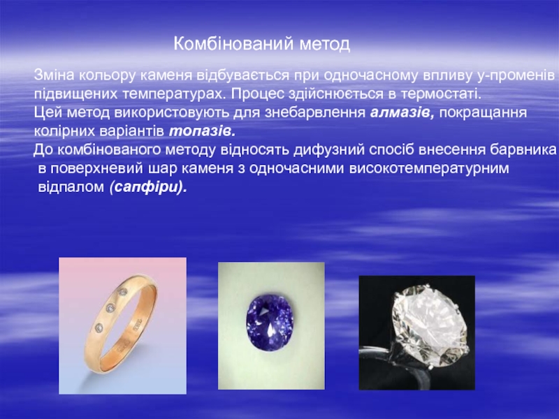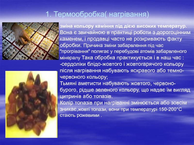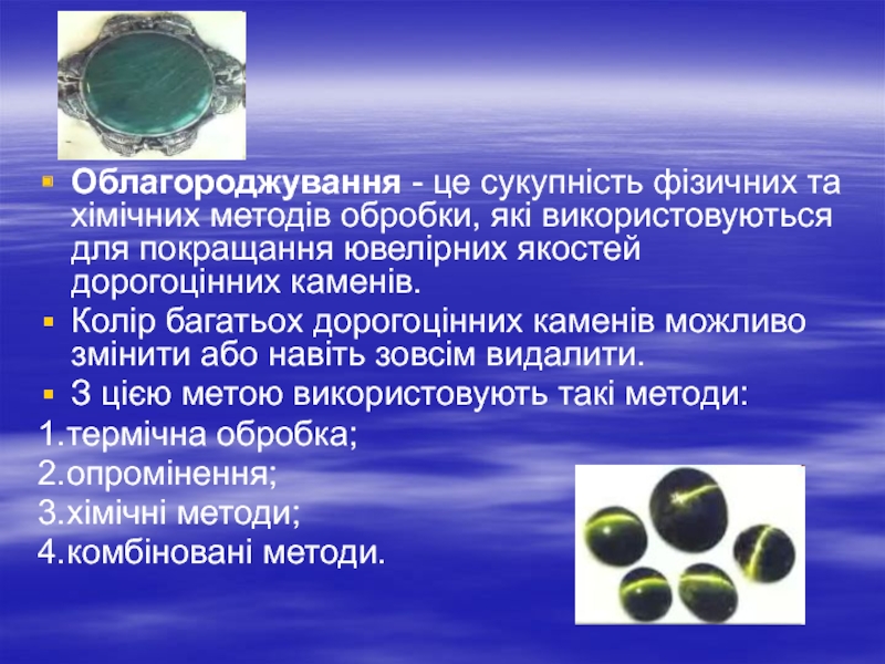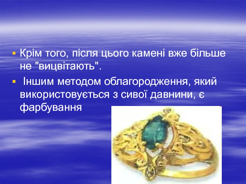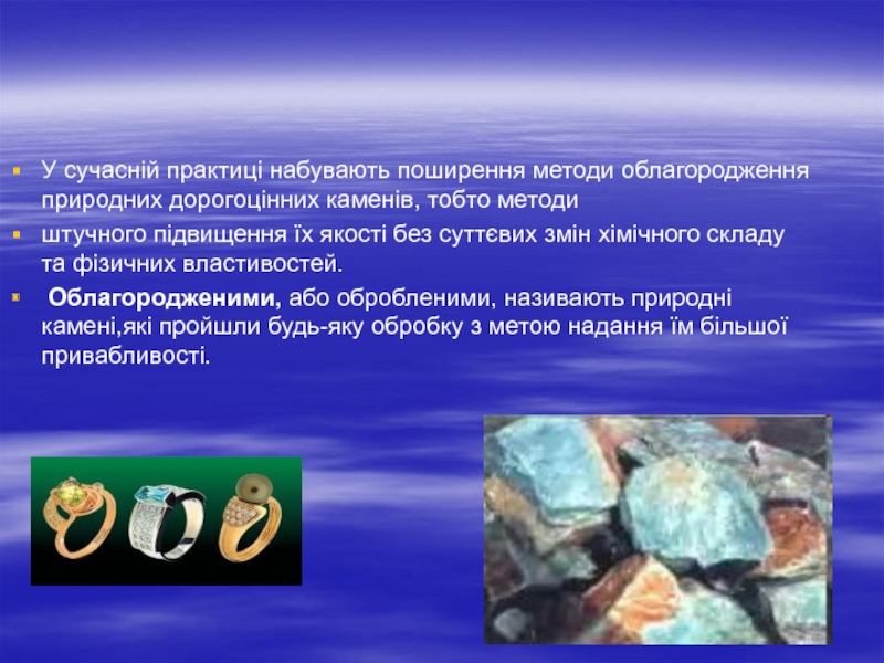 Слайд 3У сучасній практиці набувають поширення методи облагородження природних дорогоцінних каменів,