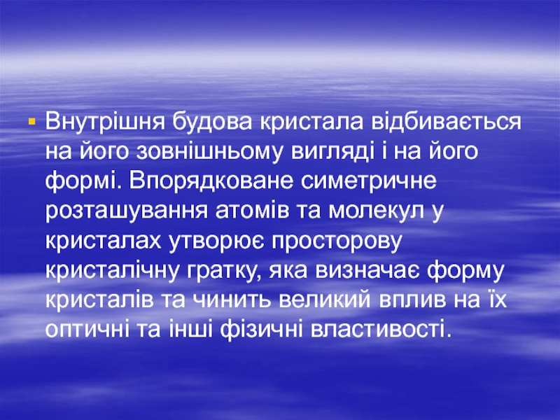 його формі. Впорядковане симетричне розташування атомів та молекул у кристалах