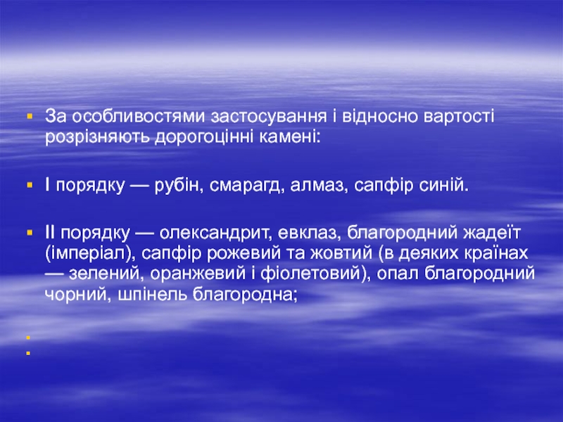 Слайд 64За особливостями застосування і відносно вартості розрізняють дорогоцінні камені: