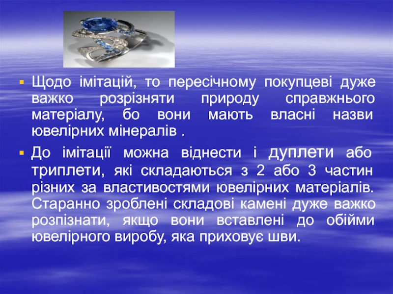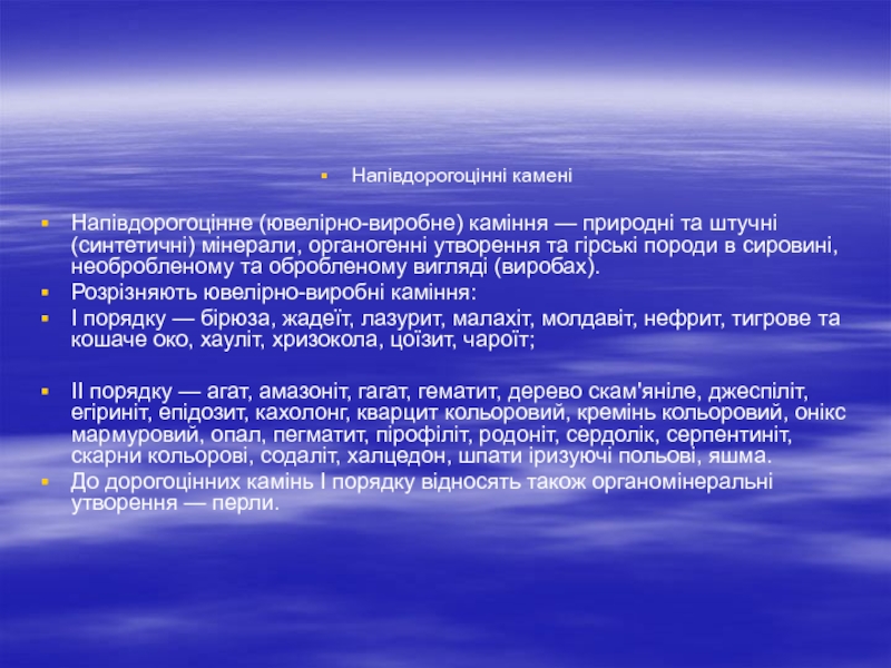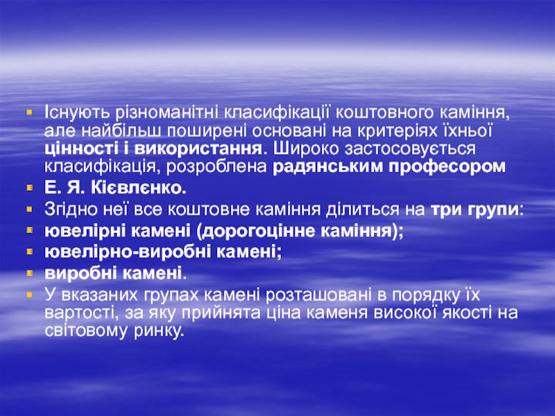 Слайд 63Існують різноманітні класифікації коштовного каміння, але найбільш поширені основані на