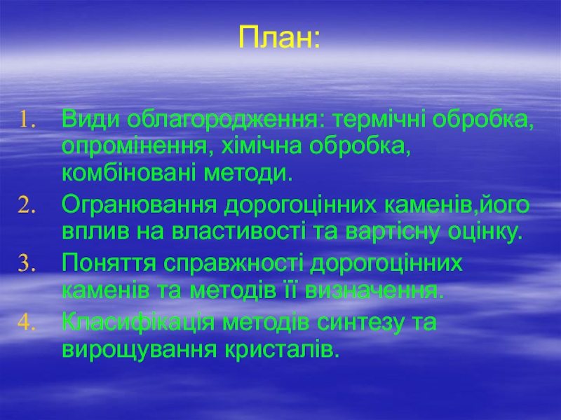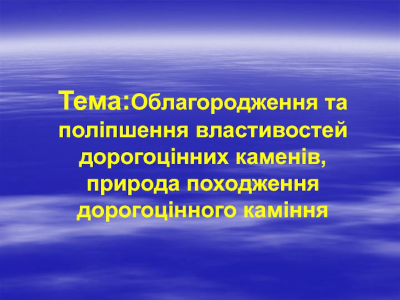 Слайд 1Тема:Облагородження та поліпшення властивостей дорогоцінних каменів, природа походження дорогоцінного каміння