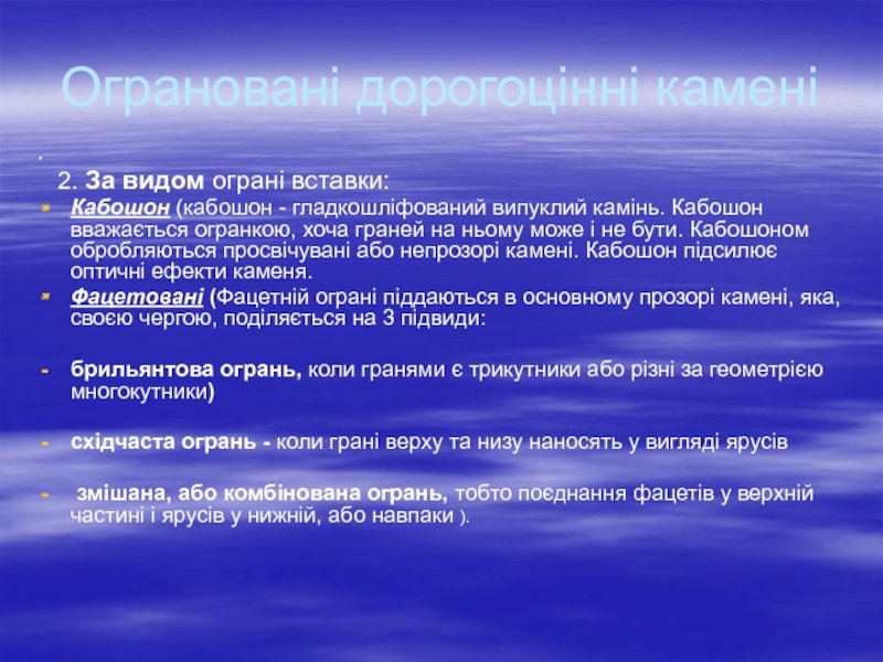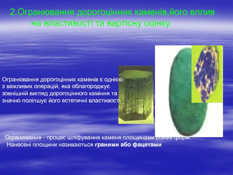 Слайд 122.Огранювання дорогоцінних каменів,його вплив на властивості та вартісну оцінку.